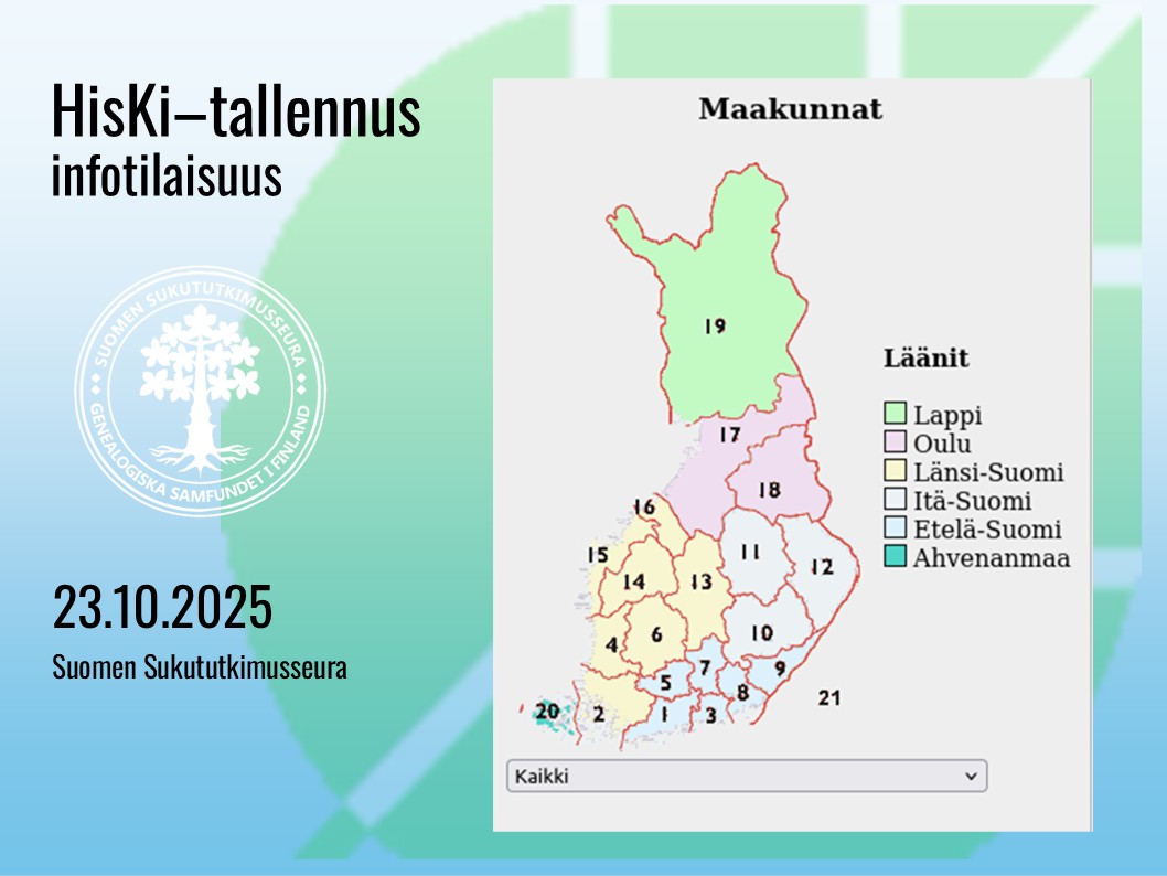 Infotilaisuudessa kerrotaan, kuinka kirkonkirjojen historiakirjojen tietokannan eli HisKin tallennusalustaa käytetään ja kuinka vapaaehtoiseen täydentämiseen pääsee mukaan. Esittelijänä palvelukoordinaattori Maarit Toivonen. Linkki infotilaisuuteen.