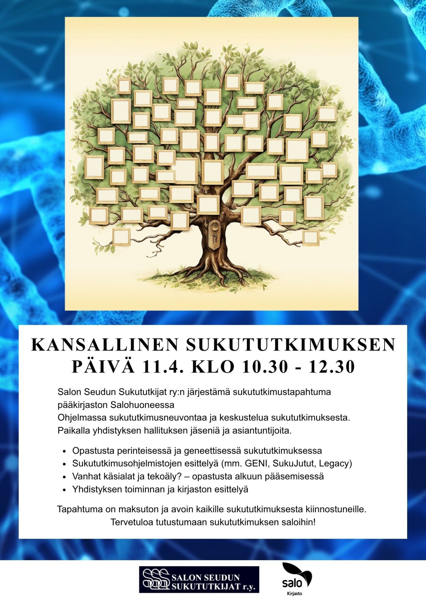 Salon Seudun Sukututkijat ry:n sukututkimustapahtumaa vietetään lauantaina 11.4.2026: